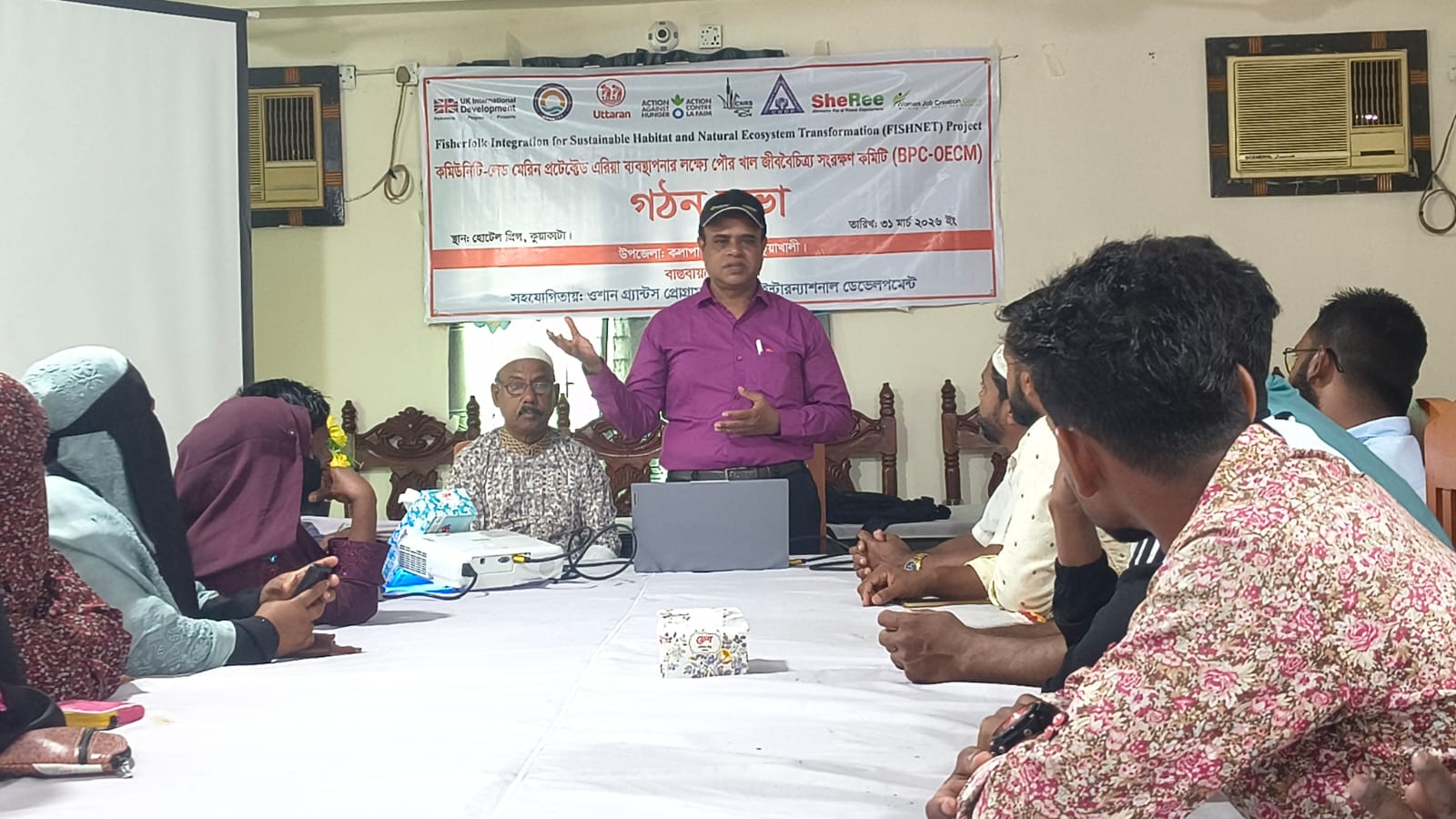 কুয়াকাটা পৌর খাল জীববৈচিত্র্য সংরক্ষণ কমিটি (BPC-OECM) এর কমিটি এর গঠন সভাটি পরিচালনা করেন উত্তরন এর ফিসনেট প্রকল্প এর টেকনিক্যাল অফিসার মোঃ শাহজাহান আলী।