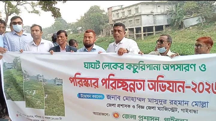 মশাবাহিত ডেঙ্গু রোগ প্রতিরোধে গাইবান্ধায় সপ্তাহব্যাপী কচুরিপানা অপসারণ ও পরিচ্ছন্নতা অভিযান শুরু হয়েছে। শনিবার (১৮ এপ্রিল) বেলা ১১টার দিকে জেলা প্রশাসনের আয়োজনে ও গাইবান্ধা পৌরসভার সহযোগিতায় সদর ভূমি অফিস সংলগ্ন ঘাঘট লেকে এ কর্মসূচির উদ্বোধন করা হয়।